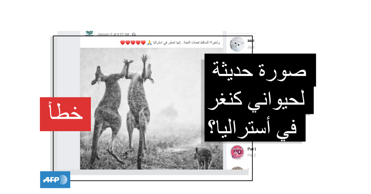 يبدو في الصورة حيوانا كنغر واقفين على ذنبيهما ويرفعان رأسيهما نحو السماء وسط تساقط الأمطار، وقد جاء في النصّ المرافق "حيوانات الكنغر في مشهد فريد وكأنها تشكر خالقها على إغاثتها بأمطارٍ من السماء بعد حرائق أستراليا الهائلة .."