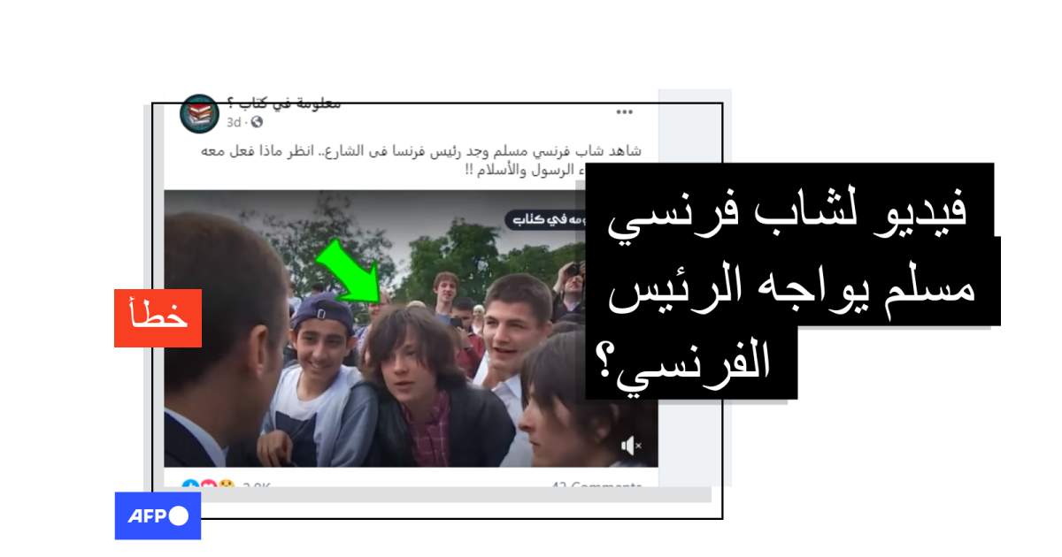 هذا الفيديو يظهر ماكرون موبخاً شاباً فرنسياً منذ سنتين ولا يمتّ بصلة إلى الإساءة إلى النبي محمد