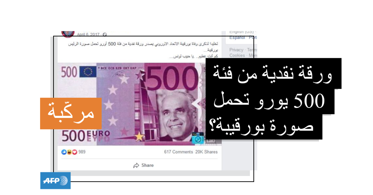 تظهر في الصورة المتداولة، ورقة نقديّة من فئة 500 يورو تحمل صورة بورقيبة، ويوضح النص المرافق لها مبرّرا "تخليداً لذكرى وفاة بورقيبة الإتحاد الأوروبي يصدر ورقة نقدية من فئة 500 يورو تحمل صورة الرئيس بورقيبة…"