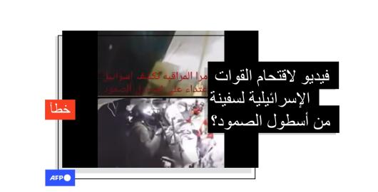 الصورة تاريخ النشر 03/10/2025 هذا الفيديو لا يوثق اعتراض إسرائيل لإحدى سفن "أسطول الصمود" بل لسفينة تابعة لأسطول الحريّة قبل أشهر