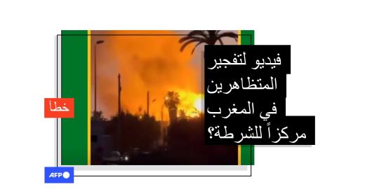 الصورة تاريخ النشر 03/10/2025 هذا الفيديو ليس لتفجير متظاهرين مركزاً للشرطة في المغرب بل لحريق ناجم عن تسرّب للغاز