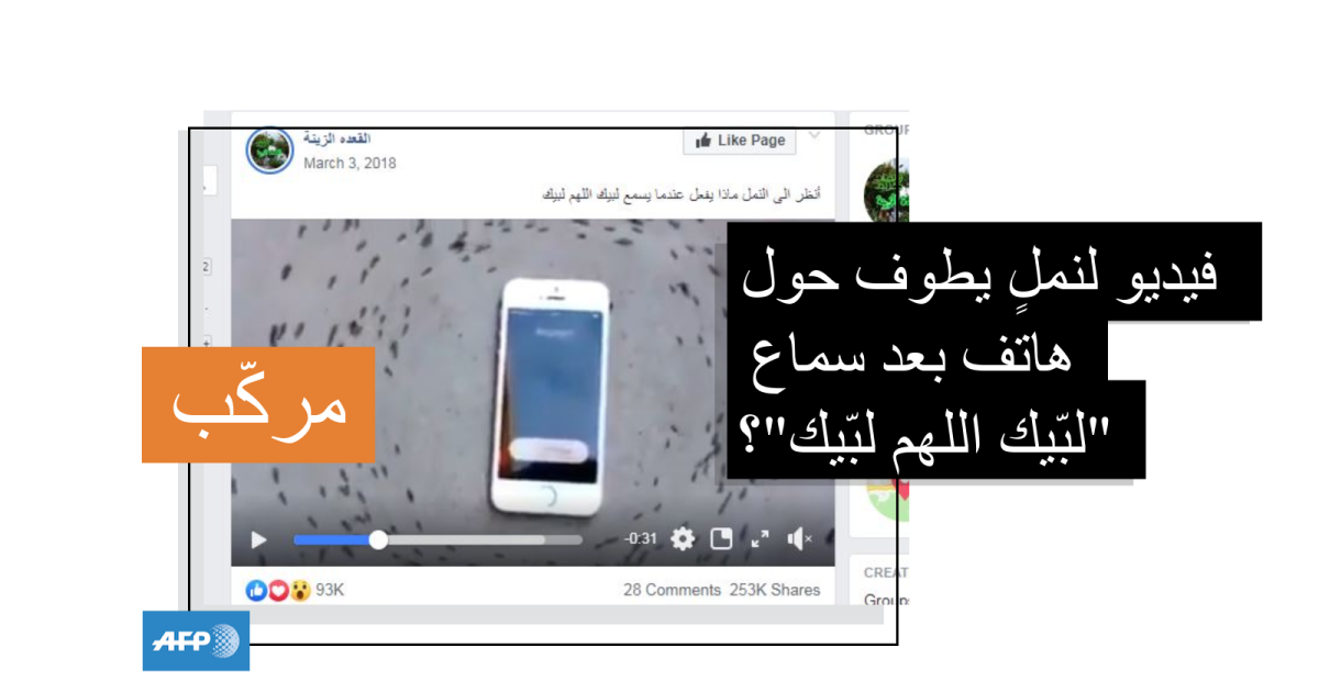 هذا الفيديو لنمل يطوف حول هاتفٍ عند سماع "لبيك اللهم لبيك" مركّب