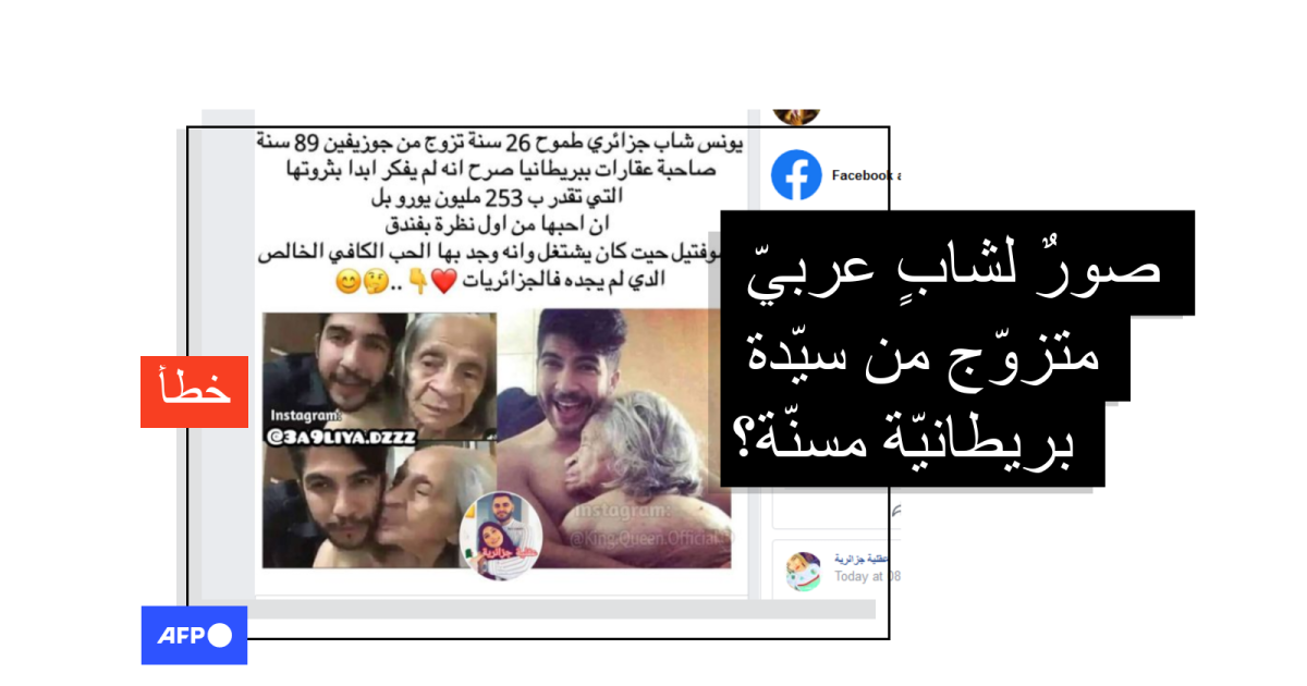 تظهر في الصورة سيّدة مسنّة وهي تقبّل شاباً، وقد جاء في النصّ المرافق لها "يونس شاب جزائري طموح 26 سنة تزوج من جوزيفين 89 سنة وصرّح أنه لم يفكر أبدا بثروتها التي تقدر بـ253 مليون يورو بل أحبها من أول نظرة…".