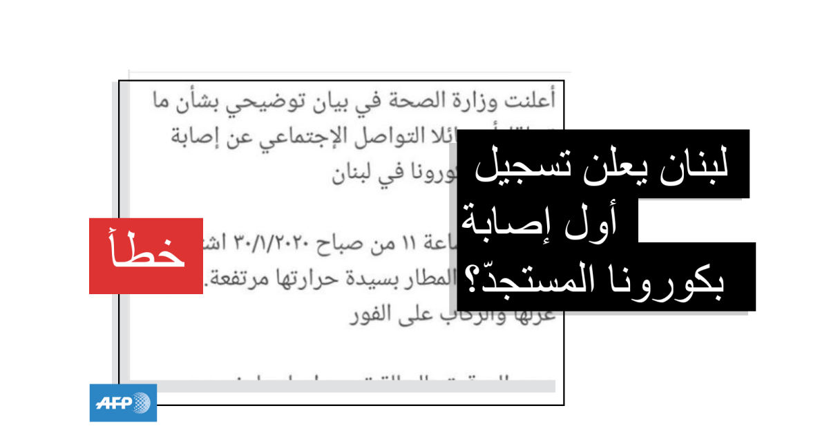 لكن السلطات اللبنانية لم تعلن تسجيل إصابة أولى بهذا المرض في الثاني من شباط/فبراير الحالي كما تدّعي المنشورات المضلّلة.
