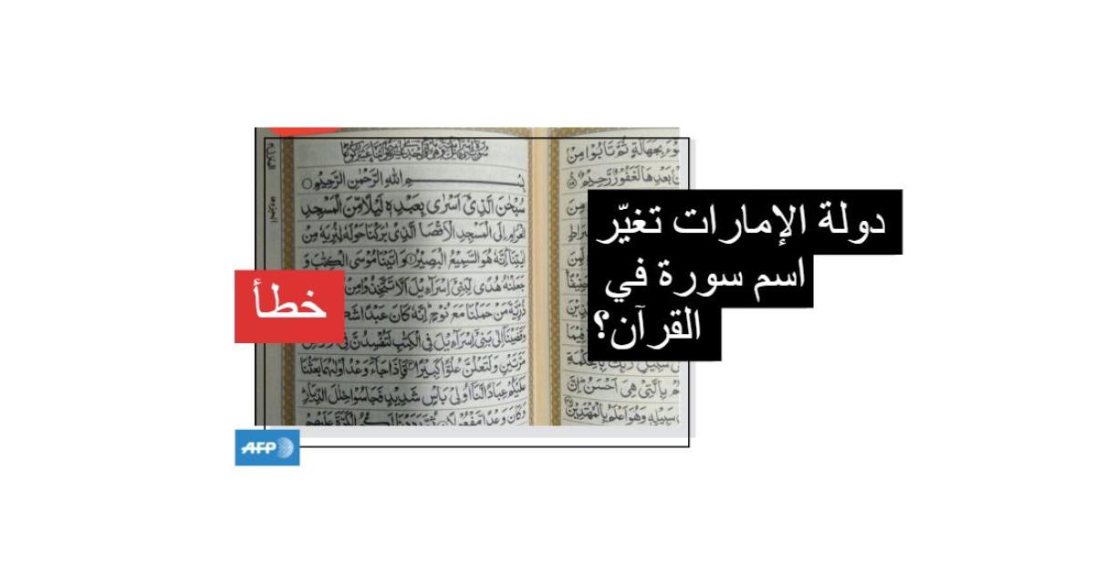 دولة الإمارات لم تغيّر اسم سورة في القرآن