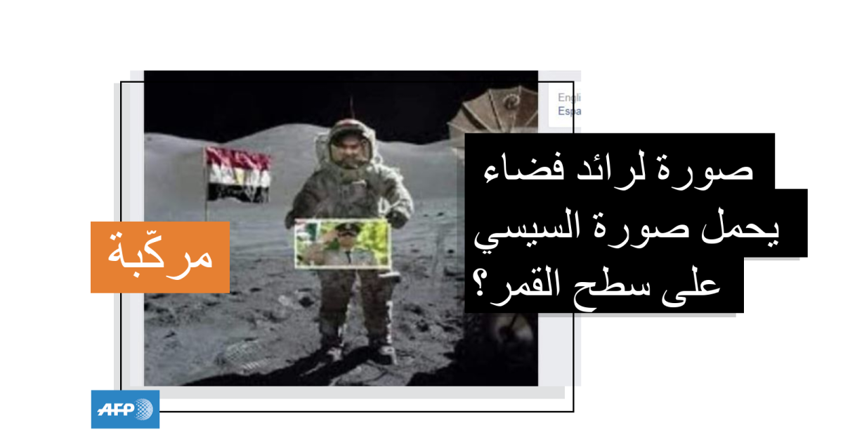 هذه الصورة لرائد فضاء يحمل صورة الرئيس المصري على سطح القمر مركّبة