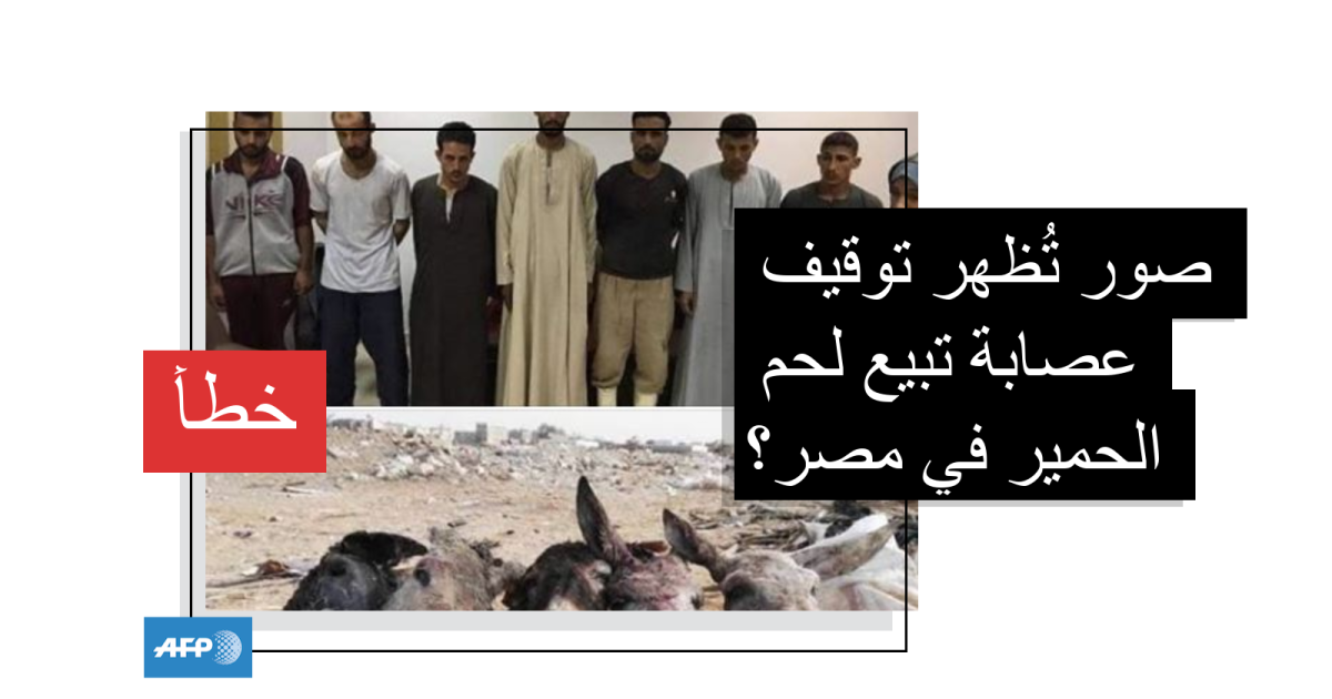 لكن هذه الصورة نشرتها وسائل إعلام مصريّة في أيلول/سبتمبر 2019 على أنها تُظهر توقيف عصابة كانت تحاول خطف طفل في سوهاج للمطالبة بفدية، ولا علاقة لهذه المجموعة ببيع لحوم حمير.