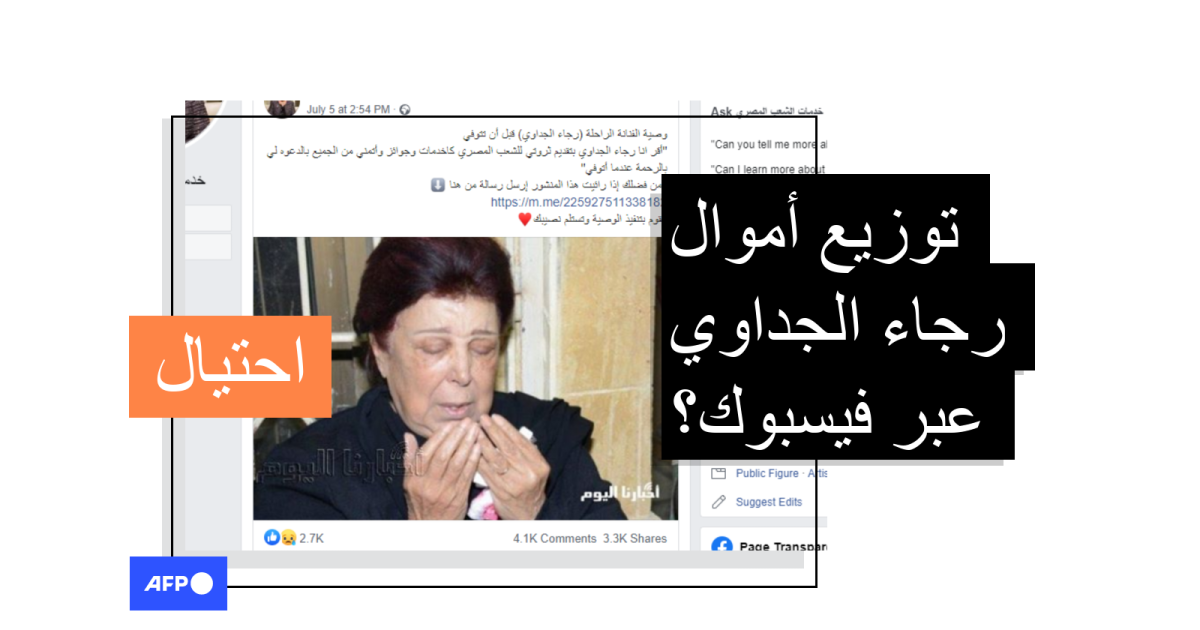 احذروا المنشورات التي تعد بتوزيع أموال الممثلة المصريّة الراحلة رجاء الجداوي