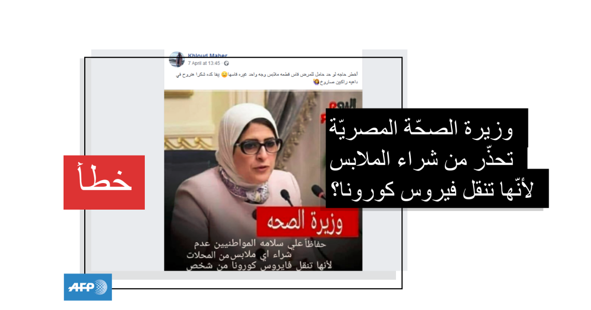 هذا التصريح المنسوب لوزيرة الصحّة المصريّة عن الملابس وكورونا المستجدّ غير صحيح