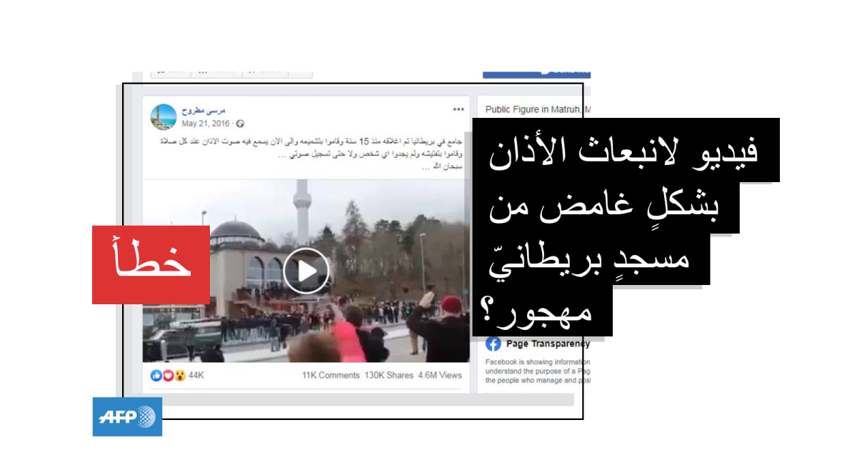 وجاء في النصّ المرافق له "جامع في بريطانيا تم إغلاقه منذ 15 سنة وقاموا بتشميعه والى الآن يسمع فيه صوت الأذان عند كل صلاة وقاموا بتفتيشه ولم يجدوا أي شخص ولا حتى تسجيل صوتي …سبحان الله".