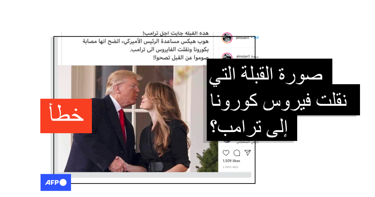كما تداولت الصورة مواقع إلكترونيّة (2,1) بعناوين عدّة منها "القبلة التي نقلت ترامب من عرشه إلى قبره"، وذلك بعد إعلان الرئيس الأميركي ليل الأول من تشرين الأول/أكتوبر على تويتر إصابته وزوجته ميلانيا بفيروس كورونا المستجد.