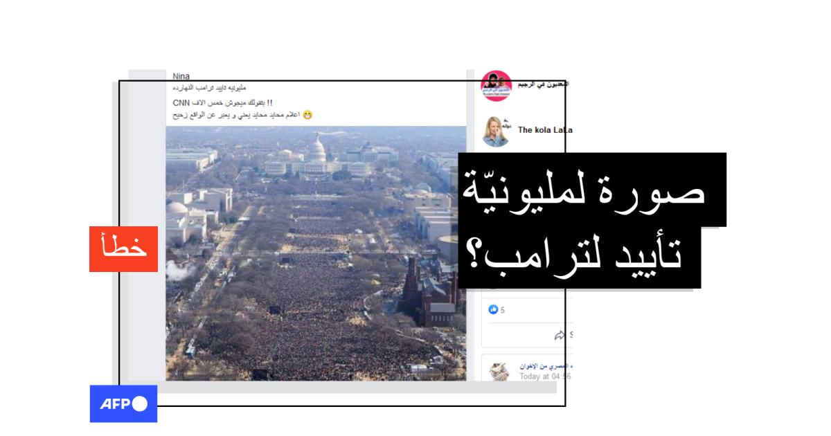 يظهر في الصورة حشدٌ هائل أمام مبنى الكونغرس الأميركي. وقد جاء في النصّ المرافق "مليونية تأييد لترامب اليوم… وسي أن أن تقول إنهم بالكاد خمسة آلاف شخص…".