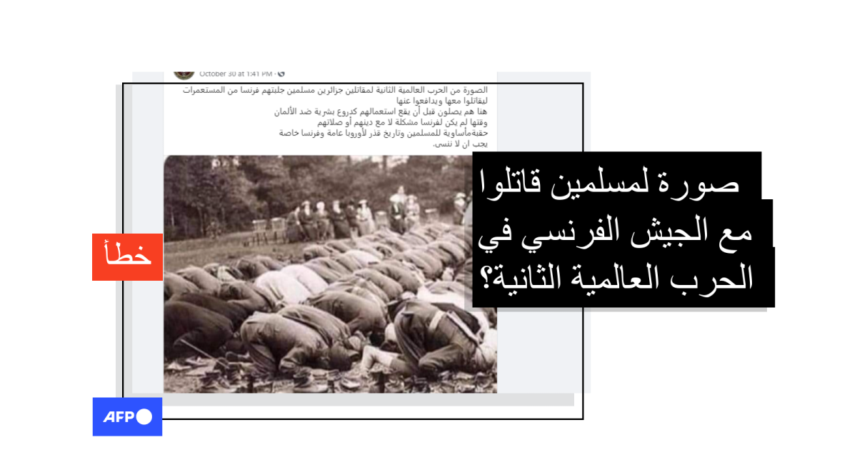 وجاء في النصّ المرافق "الصورة من الحرب العالمية الثانية لمقاتلين جزائريين مسلمين جلبتهم فرنسا من المستعمرات ليقاتلوا معها ويدافعوا عنها هنا هم يصلون قبل أن يستخدموا كدروع بشرية ضد الألمان".
