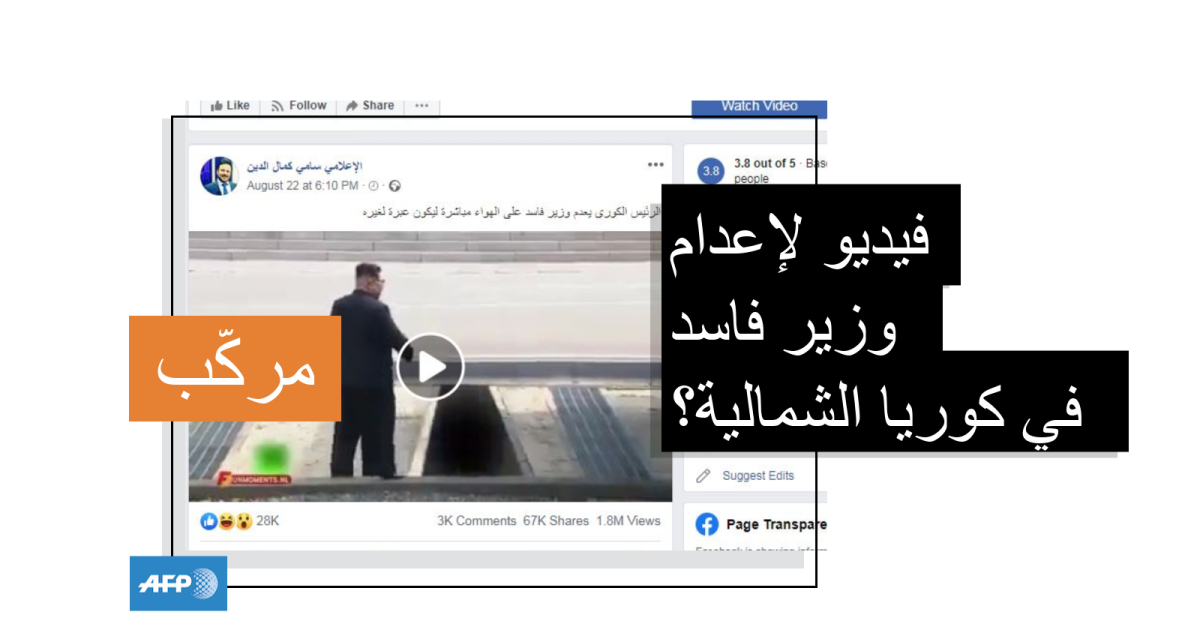 وجاء في النصّ المرافق "الرئيس الكوري يعدم وزيراً فاسداً على الهواء مباشرة ليكون عبرة لغيره".
