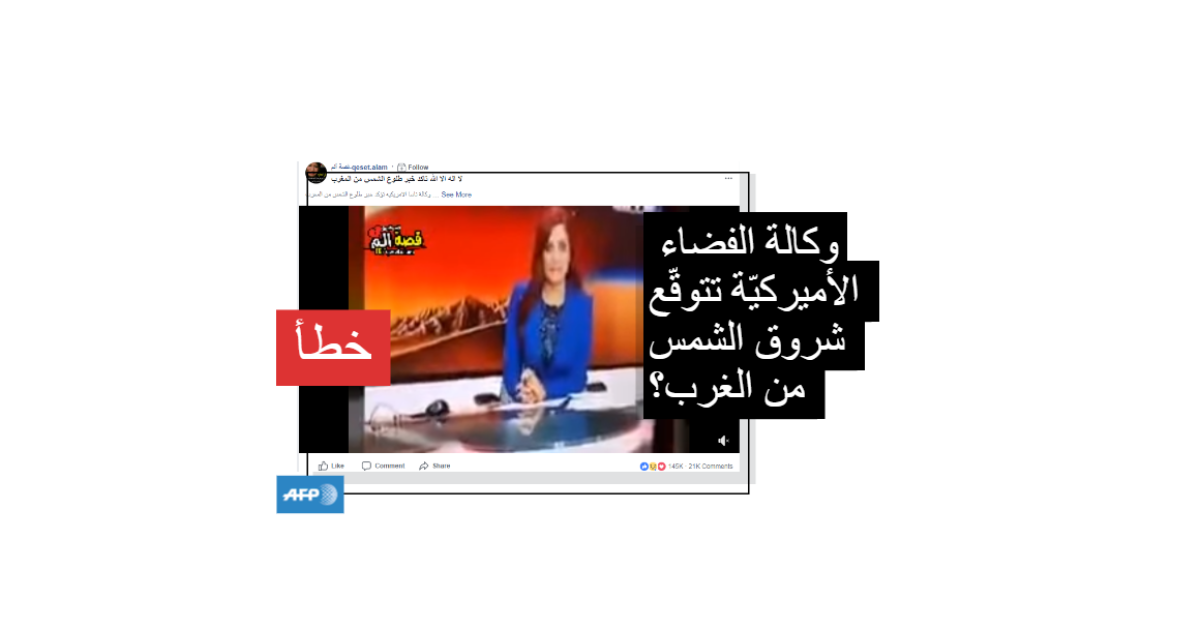 وقالت المتحدثة بيتينا إنكلان في رسالة إلكترونية لفرانس برس أن "لا وكالة الفضاء الأميركية ولا أي منظمة علميّة أخرى تنبأت بأنّ الشمس ستشرق من المغرب"، مضيفة أن "هذا الادعاء الخادع هو شبيه بتنبؤات أخرى تظهر وتختفي حول يوم القيامة".