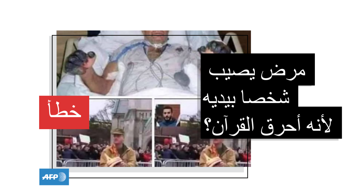 هذه الصورة ليست لِشخص أصيب بمرض بيديه لأنه أحرق القرآن