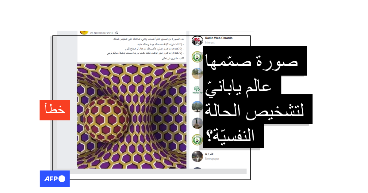تظهر في الصورة أشكالٌ هندسيّة توحي بأنّها تتحرّك وقد جاء في النصّ المرافق لها "هذه الصورة من تصميم عالم أعصاب ياباني، تساعدك على تشخيص لحالك...إذا كنت تراها ثابتة، فصحتك جيدة وعقلك منتبه...إذا كنت تراها تدور ببطئ فأعصابك مرهقة أو تحتاج للنوم...إذا كنت تراها تدور بغير توقف، فأنت متعب وربما مصاب بمشكل سايكولوجي".