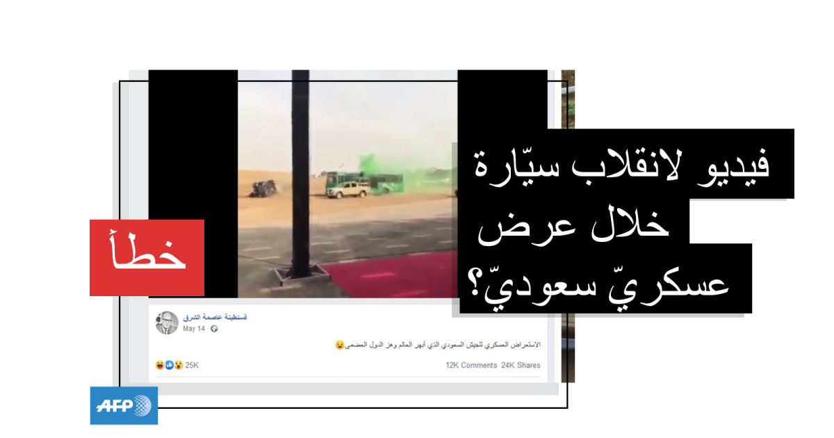 انتشر عبر مواقع التواصل الاجتماعي فيديو يظهر انقلاب آلية عسكريّة خلال مناورة أقامها الجيش الباكستاني ضمن معرضٍ عسكريّ في كراتشي. لكنّ هذا الفيديو انتشر في العالم العربي بعد أن أضيف إليه تعليقٌ باللغة العربيّة على أنّه التقط خلال عرض عسكريّ للجيش السعودي.