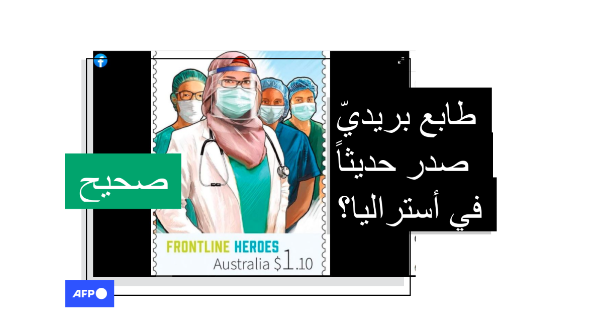 يظهر في الصورة تصميم طابعٍ بريديّ رسم عليه أفراد من الطاقم الطبيّ يرتدون ملابس واقية وتتقدّمهم سيّدة محجّبة بثوب أبيض. وقد جاء في النصّ المرافق "أستراليا تصدر طابعا بريدياً جديداً لتكريم الأطباء والممرضين لجهودهم في مكافحة فيروس كورونا، تتقدمهم طبيبة مسلمة" وقد كتب أسفل الطابع "أبطال الصفوف الأماميّة، أستراليا 1.1 دولار".