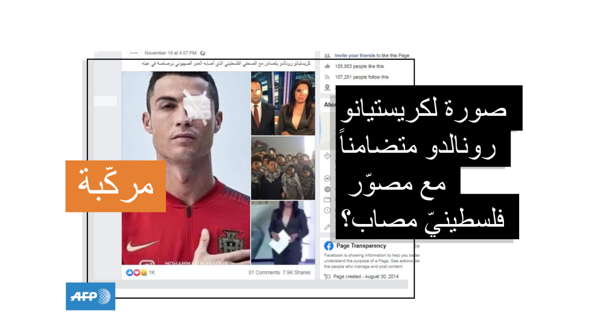 هذه الصورة مركّبة ولا تظهر كريستيانو رونالدو متضامناً مع مصوّر فلسطيني مصاب