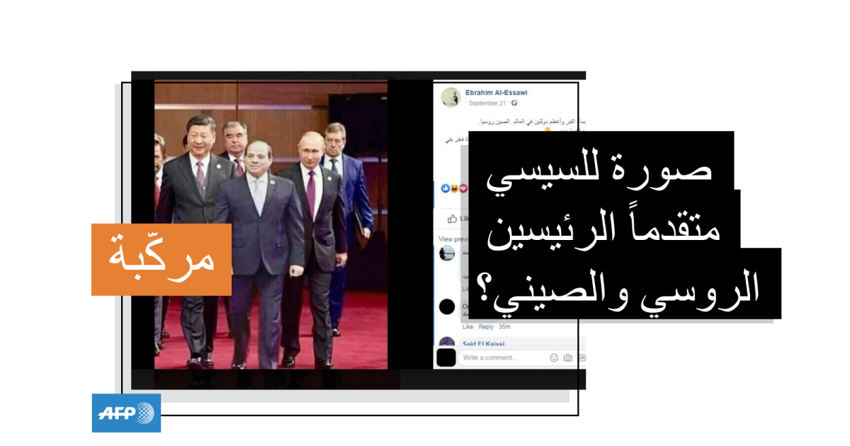 هذه الصوة للرئيس المصري متقدماً الرئيسين الروسي والصيني مركّبة