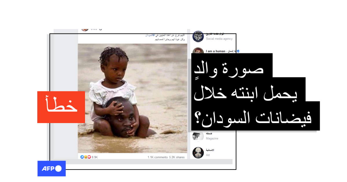 تنتشر على مواقع التواصل الاجتماعي صورة رجلٍ يحمل ابنته على كتفيه ليحميها من السيول على أنّها ملتقطة خلال الفيضانات التي تضرب السودان منذ أكثر من شهر. لكنّ الصورة في الحقيقة ملتقطة عام 2007 في هايتي.