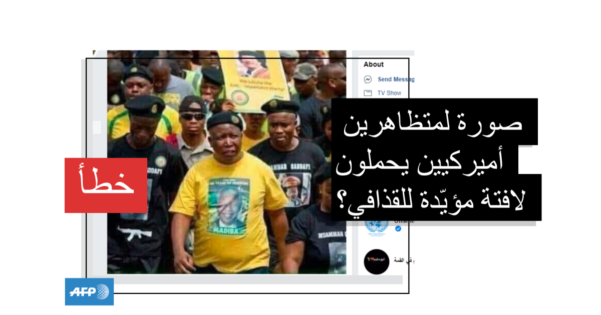 وقد جاء في النصّ المرافق لها "صور الزعيم العقيد معمر القذافي ترفع فى أميركا".