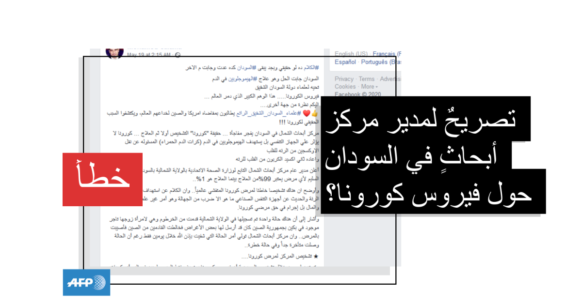 هذا التصريح المنسوب لمسؤول سوداني حول فيروس كورونا المستجدّ لا أساس له من الصحّة