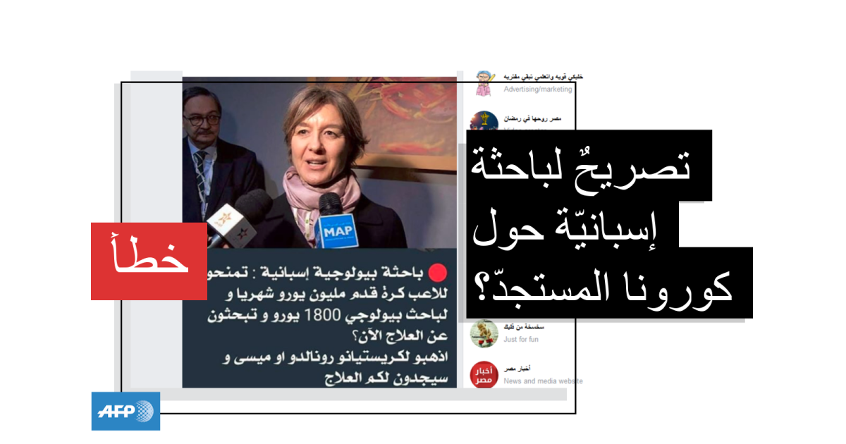 يجمع المنشور المتداول بين صورة لسيّدة ونصّ جاء فيه "باحثة بيولوجية إسبانية: تمنحون للاعب كرة قدم مليون يورو شهرياً ولباحث بيولوجيّ 1800 يورو وتبحثون عن العلاج الآن؟ اذهبوا إلى كريستيانو رونالدو أو ميسي وسيجدان لكم العلاج".