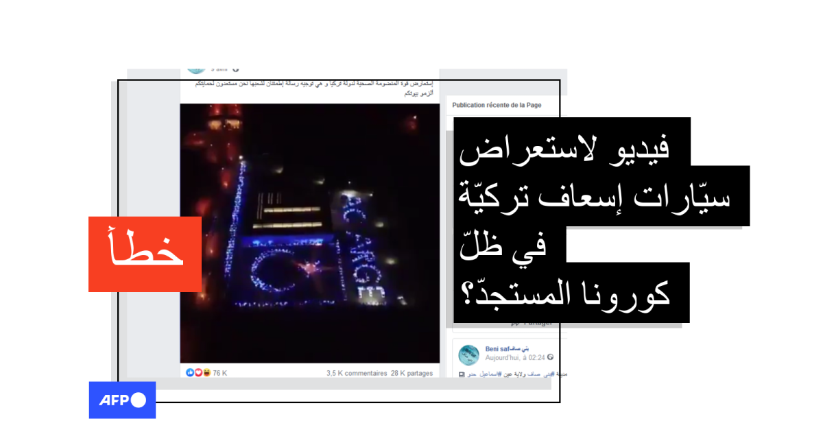 وقد جاء في النصّ المرافق له "استلمنا سيارات إسعاف جديدة لتوزيعها على مختلف المحافظات التركيّة"، كما نشر الفيديو في صفحات أخرى منها في شهر أيلول/سبتمبر 2019.
