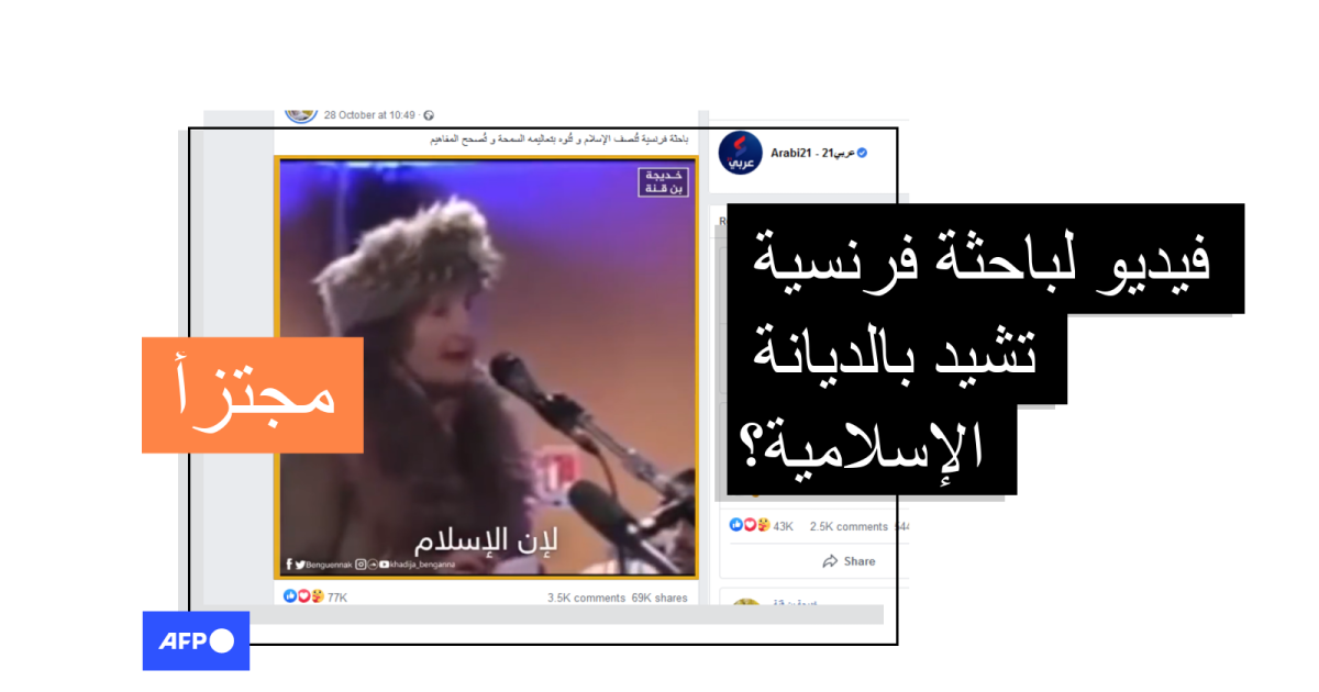 هذا الفديو مجتزأ، والباحثة الفرنسيّة كانت تهاجم الإسلام في كلمتها ولم تنوّه به