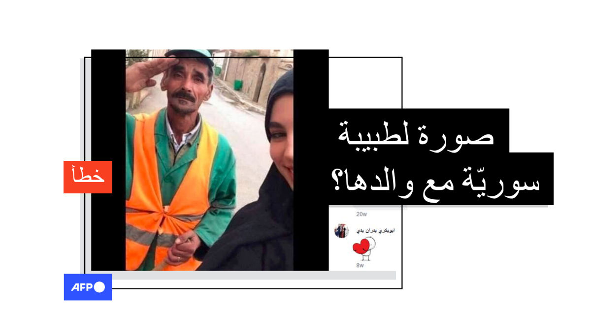 هذه الصورة ليست لطبيبة سوريّة مع والدها عامل النظافة بل لسيّدة جزائريّة مع مربّيها