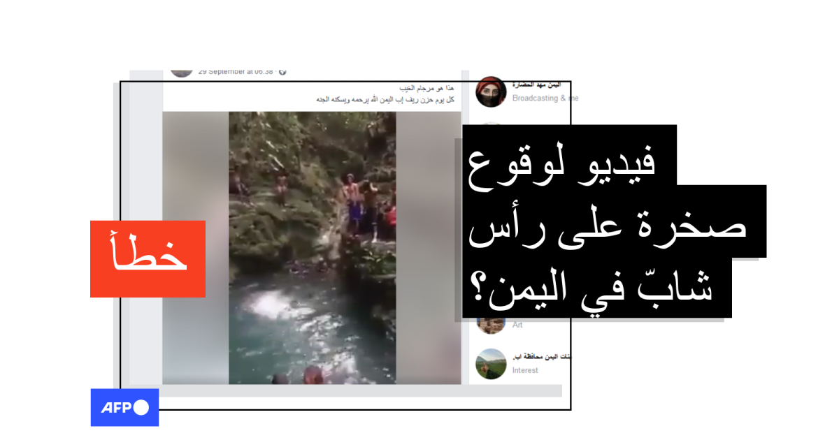 هذا الفيديو لوقوع صخرة على رأس شابّ ملتقط في الدومينيكان وليس في اليمن