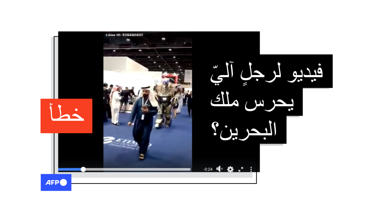 لكنّ التدقيق في الفيديو يبيّن أنّ الشخص الذي يسير أمام الروبوت ليس ملك البحرين حمد بن عيسى آل خليفة، ويمكن مشاهدة ملامح الملك في الفيديو أدناه بوضوح.