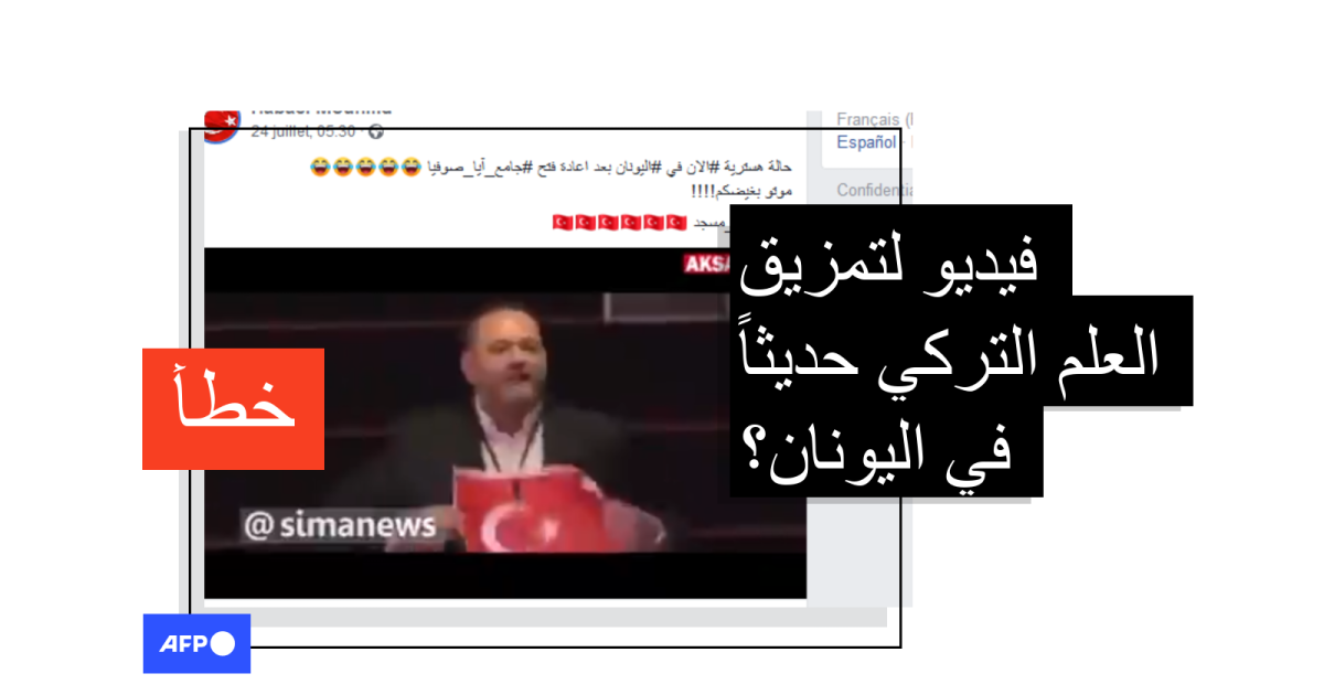 لكنّ المقطع المتداول لا علاقة له بآيا صوفيا. فبعد تقطيعه إلى مشاهد ثابتة، أرشد البحث إلى أنّ الفيديو ملتقط في كانون الثاني/يناير 2020 ويظهر نائباً يونانياً يمزّق العلم التركي خلال نقاش حول حالة المهاجرين في الجزر اليونانية في البرلمان الأوروبي.