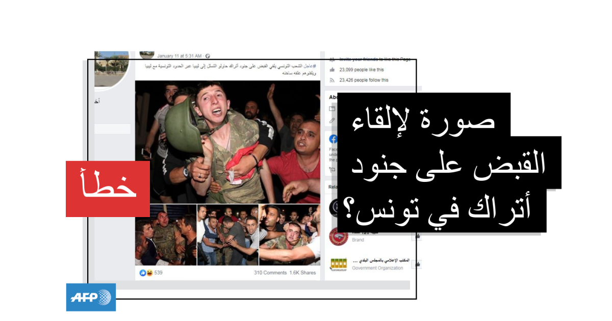 تظهر الصور جنوداً بلباسهم العسكريّ يتعرّضون للعنف من مدنيين يحيطون بهم، وقد جاء في النصّ المرافق "الشعب التونسي يلقي القبض على جنود أتراك حاولوا التسلل إلى ليبيا عبر الحدود التونسية..".