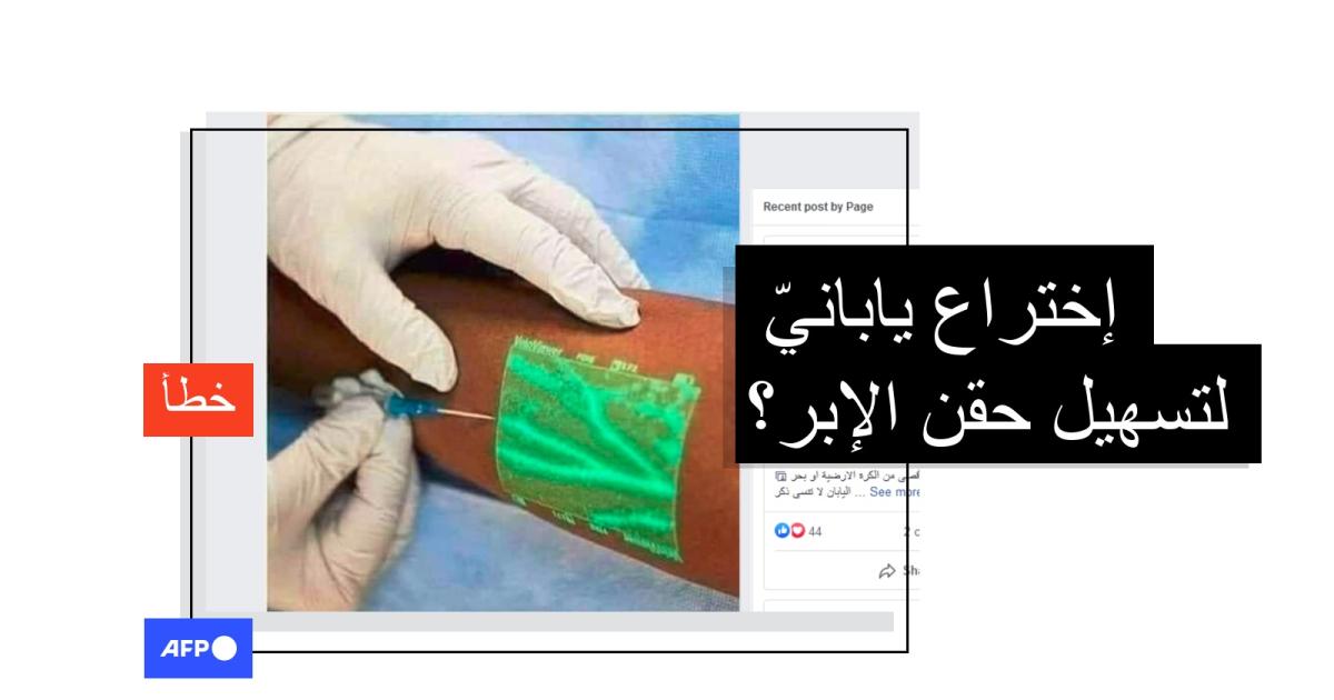 يبدو في الصورة ذراعٌ انعكست عليه بقعة أشعة خضراء تظهر من خلالها عروق الدم، وإبرة على وشك أن تحقن. وقد جاء في النصّ المرافق لها "اليابان...اختراع شريحة لاصقة مشعة تكشف عن مكان العروق والشرايين والأوردة لتسهيل عمليات حقن الإبر الطبية".