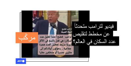 الصورة ذكاء اصطناعي تاريخ النشر 11/12/2025 هذا الفيديو مولّد باستخدام الذكاء الاصطناعي ولا يظهر الرئيس الأميركي متحدثاً عن تقليص عدد السكان في العالم