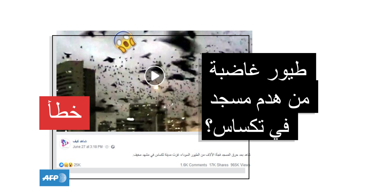 ونشر الفيديو على هذه الصفحة بعنوان "شاهد بعد حرق المسجد فجأة الآلاف من الطيور السوداء غزت مدينة تكساس في مشهد مخيف".