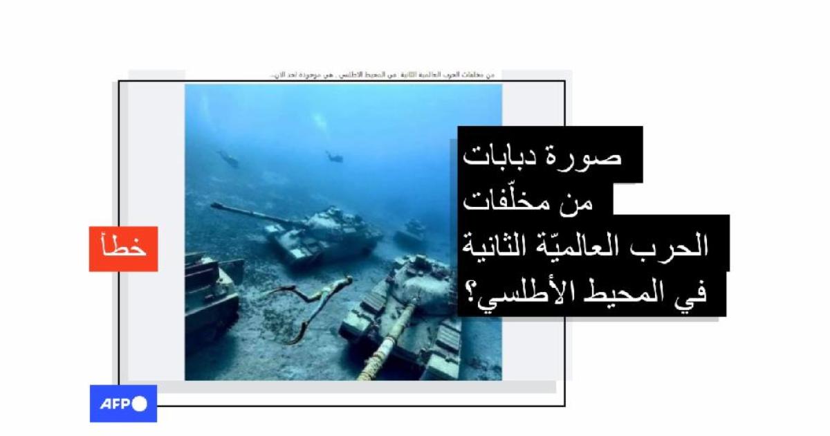 يبدو في الصورة الملتقطة تحت الماء، عدد من الدبابات يسبح بينها غطاسون. وعلّق ناشرو الصورة بالقول "من مخلّفات الحرب العالميّة الثانية في المحيط الأطلسي" وأضافوا أنها ما زالت "موجودة حتى اليوم".