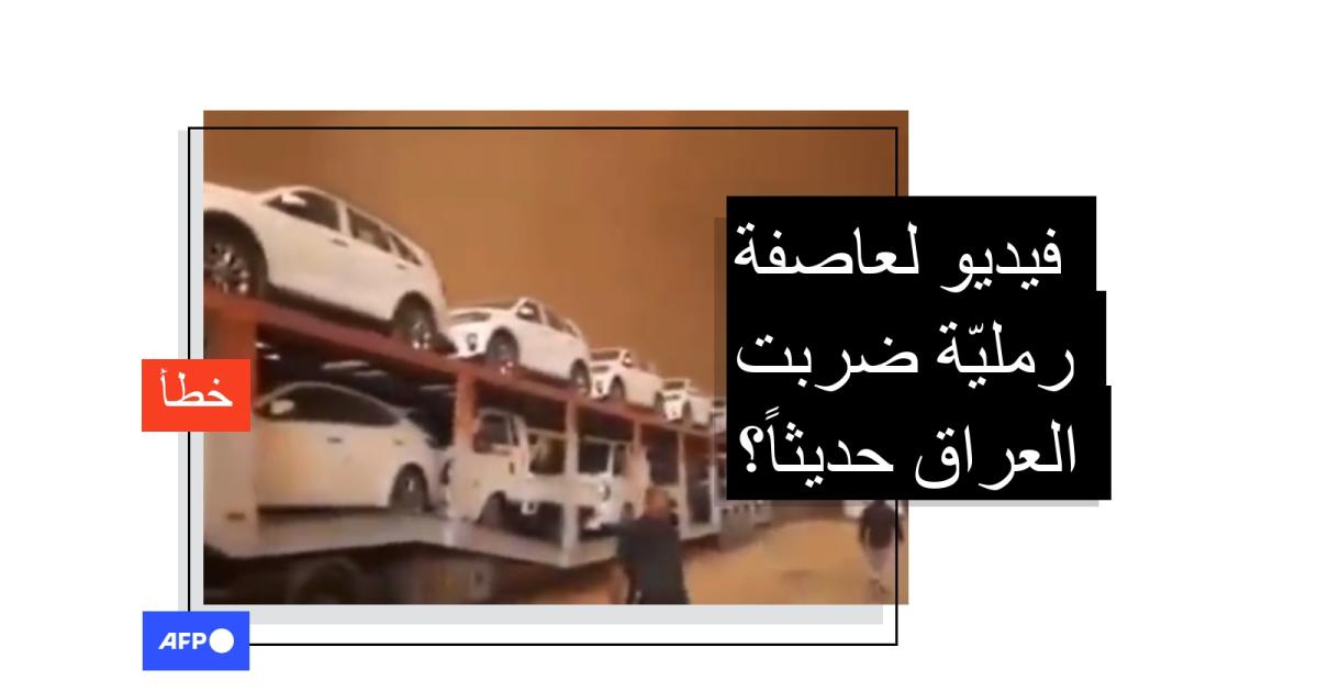 تظهر في الفيديو سماء ملبّدة بالغبار وتبدو آليات ضخمة لنقل السيارات.