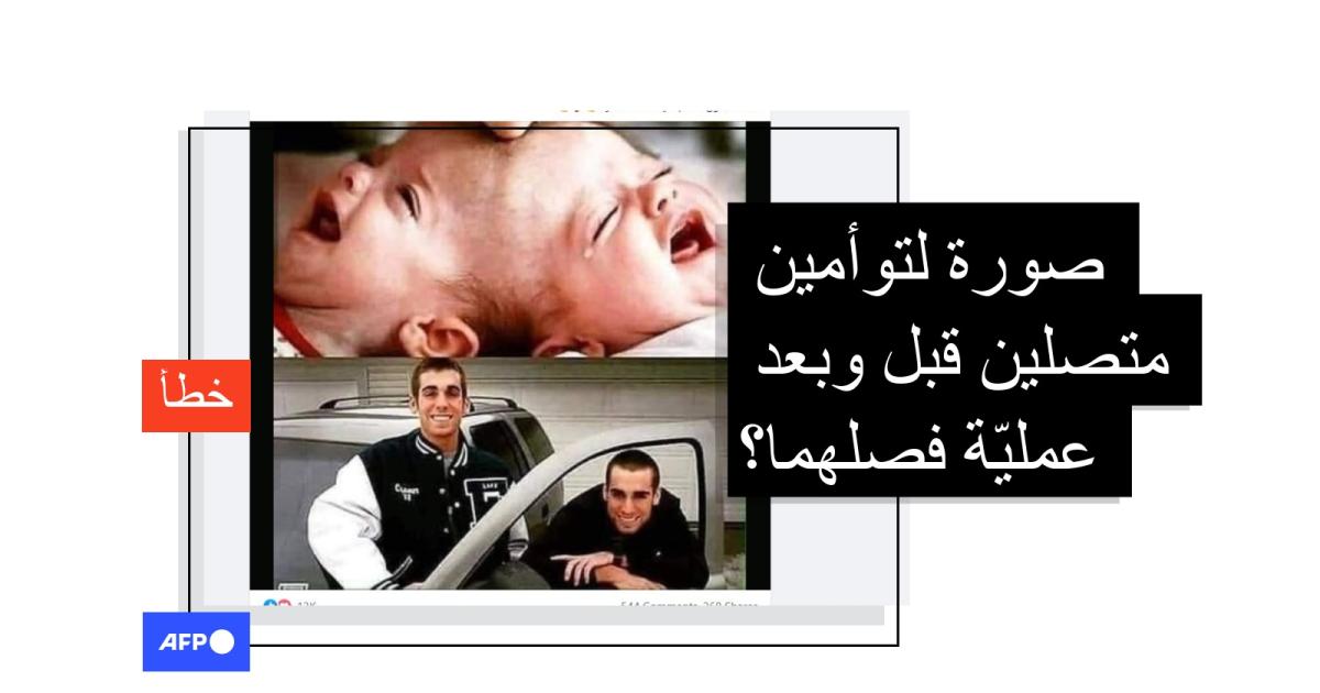 أمّا الصورة الثانية فسبق أن نُشرت في سياق مضلّل آخر وتحقّقت منها مواقع أجنبيّة متخصّصة في تدقيق الأخبار، وأشارت إلى أنّها تعود لشابّين أميركيين كرايمر وكارسون غورملي، وهما توأمان لكن لم يكونا متّصلين أصلاً عند الولادة.