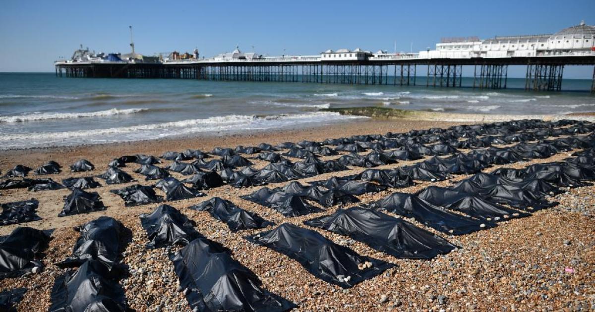 وتُظهر الصورة في الحقيقة تحرّكاً دعت له منظّمة العفو الدوليّة استعملت فيه أكياس سوداء في شاطئ برايتون جنوب بريطانيا، من أجل لفت النظر إلى قضية اللاجئين في البحر الأبيض المتوسّط والضغط على الحكومات الأوروبية بهذا الشأن.