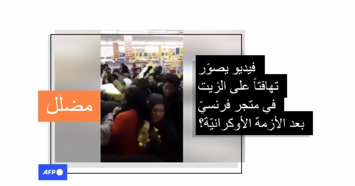 هذا الفيديو الذي يصوّر تهافتاً على شراء الزيت في متجر فرنسيّ قديم ولا علاقة له بالأزمة في أوكرانيا