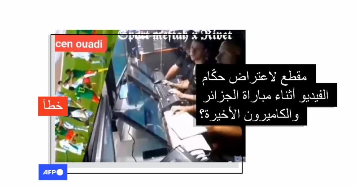 هذا المقطع لا يُظهر اعتراض حكّام الفيديو أثناء مباراة الجزائر والكاميرون الأخيرة بل هو مصوّر في فرنسا قبل سنوات