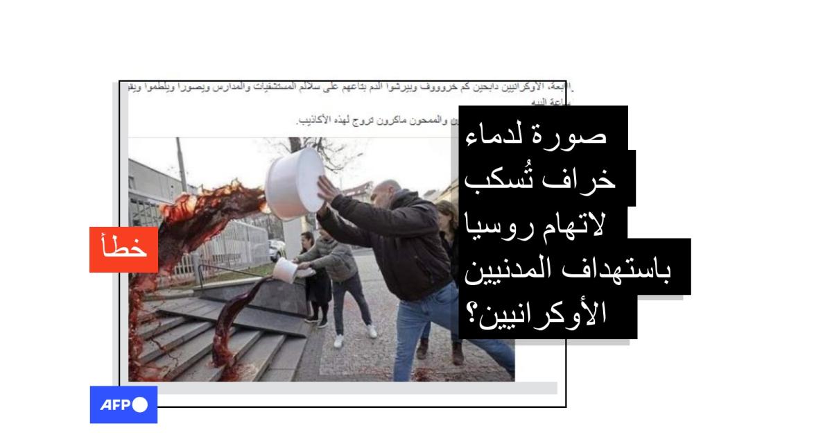 إلا أنّ هذه الصورة لا تظهر أوكرانيين يسكبون دماء حيوانات على أنّها لمدنيين، مثلما ادّعت المنشورات.