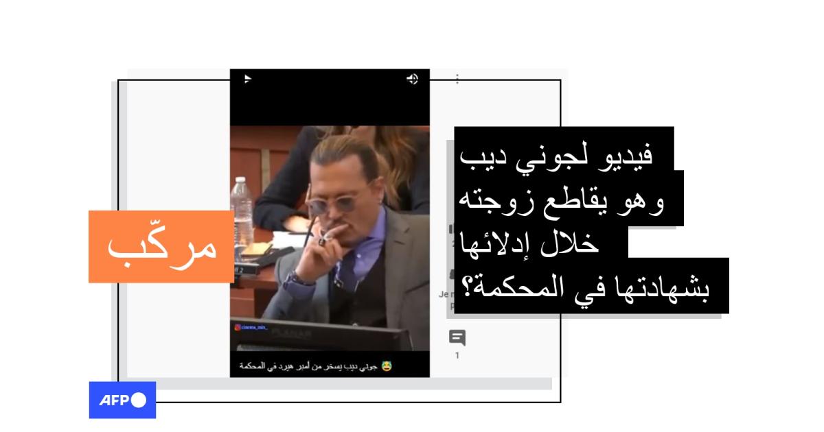 يتداول مستخدمون لمواقع التواصل الاجتماعي مقطع فيديو يدّعي ناشروه أنّه للممثّل جوني ديب وهو يقاطع زوجته السابقة آمبر هيرت في قاعة المحكمة بتصرّفات ساخرة. إلا أنّ الفيديو مركّب.