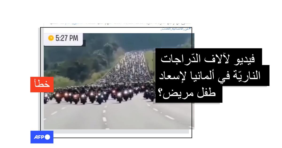 صحيح أن وسائل إعلام محليّة نقلت قصّة مشابهة في تموز/يوليو من العام 2021، حين لبّى ما يقارب 15 ألفاً من سائقي الدراجات الناريّة دعوة لإسعاد طفل مريض في السادسة من عمره في مدينة رودرفن الألمانية، لكن المقطع الذي تظهر فيه دراجات نارية في الفيديو المتداول لا شأن له بذلك.