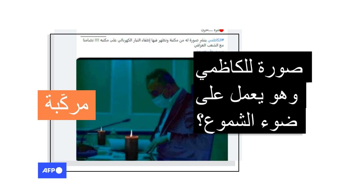 صورة الكاظمي وهو يعمل على ضوء الشموع مركّبة