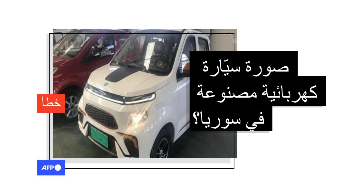 هذه الصورة لا تُظهر سيارة مصنوعة في سوريا بل سيارة كهربائية مصنوعة في الصين